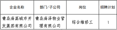 为满足集团业务发展需要,青岛海高城市开发集团有限公司现面向社会公开招聘工作人员1名,具体招聘公告如下: