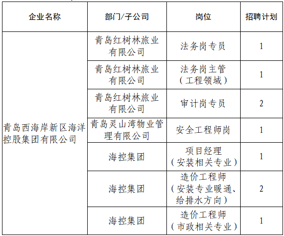 请登录“青岛人才网”(http://rc.qingdao.gov.cn),查看“青岛西海岸新区海洋控股集团有限公司”招聘公告。